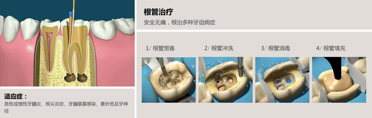 【适应症】:深度龋齿、牙髓坏死、牙髓炎、根尖周炎、牙髓外漏。