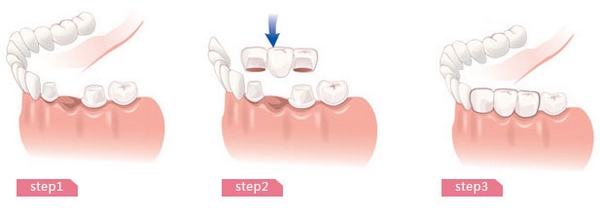 固定义齿——牙科医生称之为“固定桥”,老百姓多称其为“烤瓷牙”。具体做法是把缺失牙两边的健康牙磨小,变成“桥墩”,然后做牙套套住两边磨小的牙齿,来架住缺失的牙齿(又称桥体),这种方法无需每天取下来清洁,咀嚼功能较强。