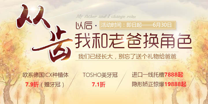 曾几何时,你是否关注过父亲的饮食习惯,昔日的大鱼大肉已被白米粥代替。并不是他们不想吃、不能吃,只是因为掉了的那几颗牙,再也吃不了。牙齿缺失影响的不仅仅是饮食,为了父亲的身体健康,缺牙一定要及时修复。